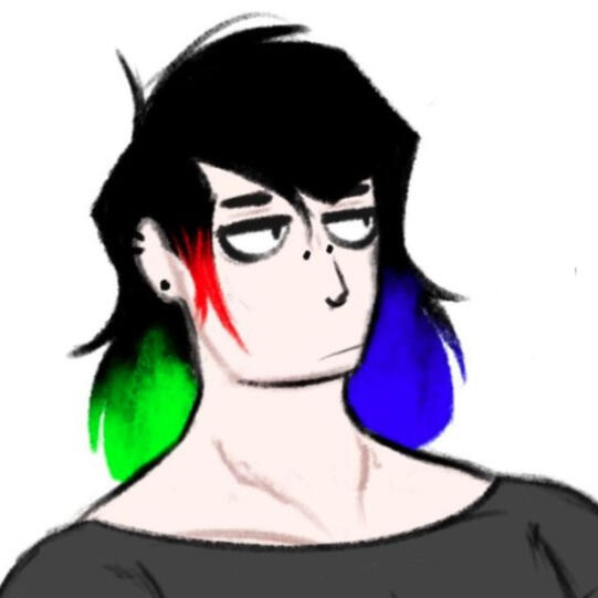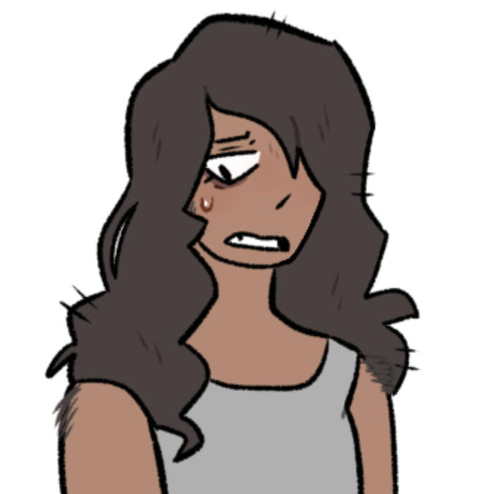 Member of Tabs's cult, Mal calls it a "commune"Often afflicted with very vivid lucid dreams and nightmares, often involving completely empty versions of places they've visited before.The cult uses "it" pronouns as one of their ways of referring to each other, as they see it as a way of being more connected to Tabs as their god figureIs completely blindsided when Tabs visited it for the first time but now is more casual with it since it was kinda relieved that it's not as outwardly intimidating than it thought it was (lol), but it's still very scared of it. It's just good at hiding it.The tank top is a casual outfit they wear at home, their "uniform" is a navy blue long-sleeved shirt with long, black pants.The scars on their arms are encouraged by the leader to make one for every 1 mistake they make, and they're all added when they get home, as a visual of how imperfect they all are. Almost everyone in the cult has them, including the Matron, and they all have a journal page with tally marks separated by day to keep track of them.Has hip hypermobility and flat feet (projecting)I think they would kinda sound like Bee from Bee and Puppycat but slightly deeper (or Rio Romeo singing Over & Over)Tabs turned them into a werewolf so now they have to deal with that. Their werewolf form is about 1.5 ft. larger than their original height and has apenis. the penis was not there beforethey've started growing body hair on their shoulders and the side of their head due to the repeated transformations.When they get in "moods" due to the rush/flood of hormones during transformation, Tabs lets Mal use its body as "practice" for it wants them to do to other people. yes it's what you're thinking of. yes you could technically call it coerciveMal is in another state of mind when this happens so they are not aware that they're doing thisNOTES ON TABS'S OTHER LOVERS: